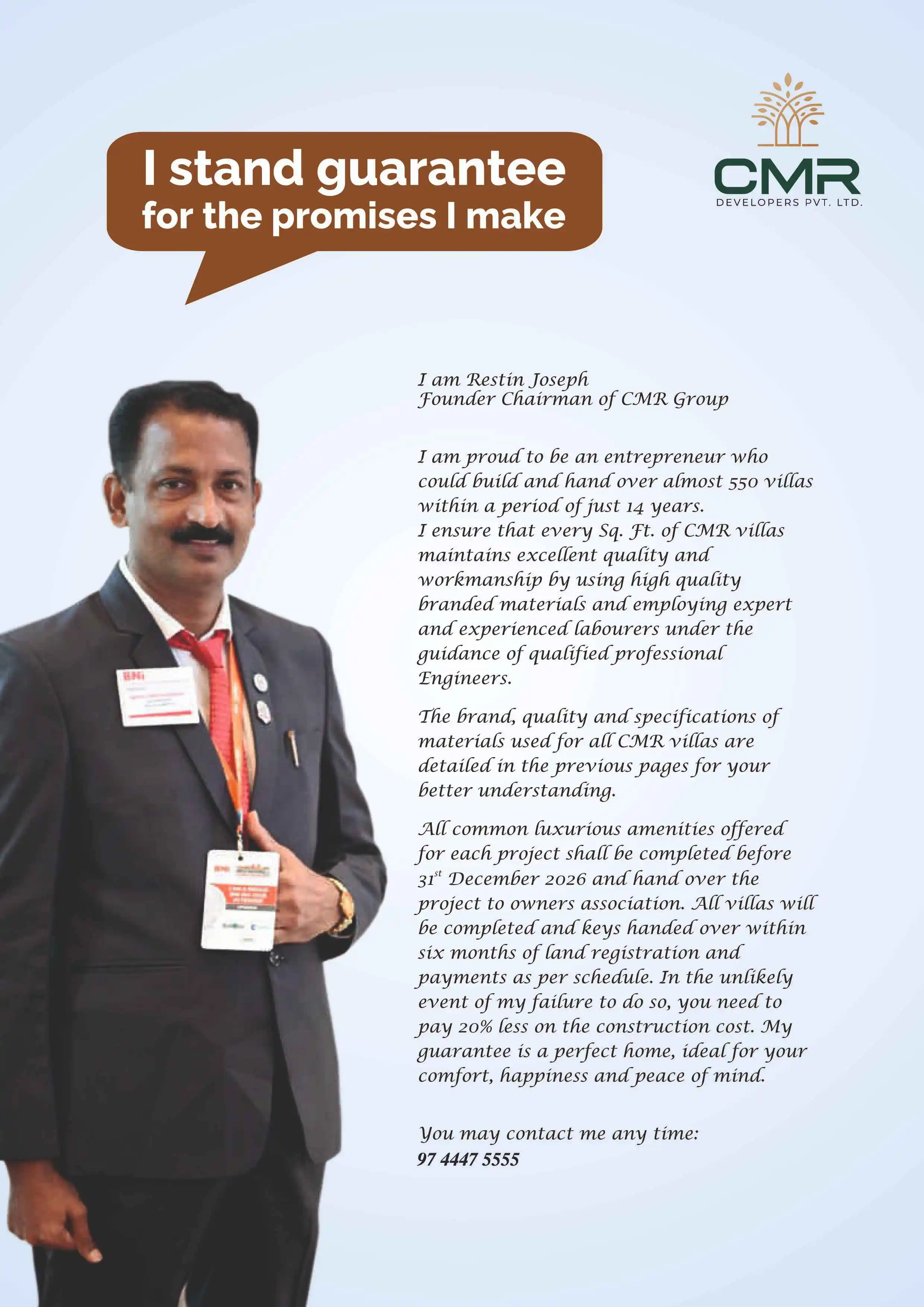 This property is in possession of CMR Villa Project, Work starts soon after RERA approval..